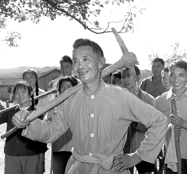 甘祖昌回到家乡后,一直和村民一起参加生产劳动。(图片来源:新华社)