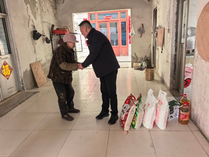 在残疾老人刘文霞家中,那块闪亮的“光荣之家”的牌子还安静的挂在老旧的铁门旁。村干部介绍,老人的独子已于多年前在部队因公离世,刘文霞一直过着独居的生活。在得知她的实际困难后,队员们及时送上了大米、油、牛奶等慰问物资,叮嘱她一定要保重身体,用积极乐观的心态面对生活。