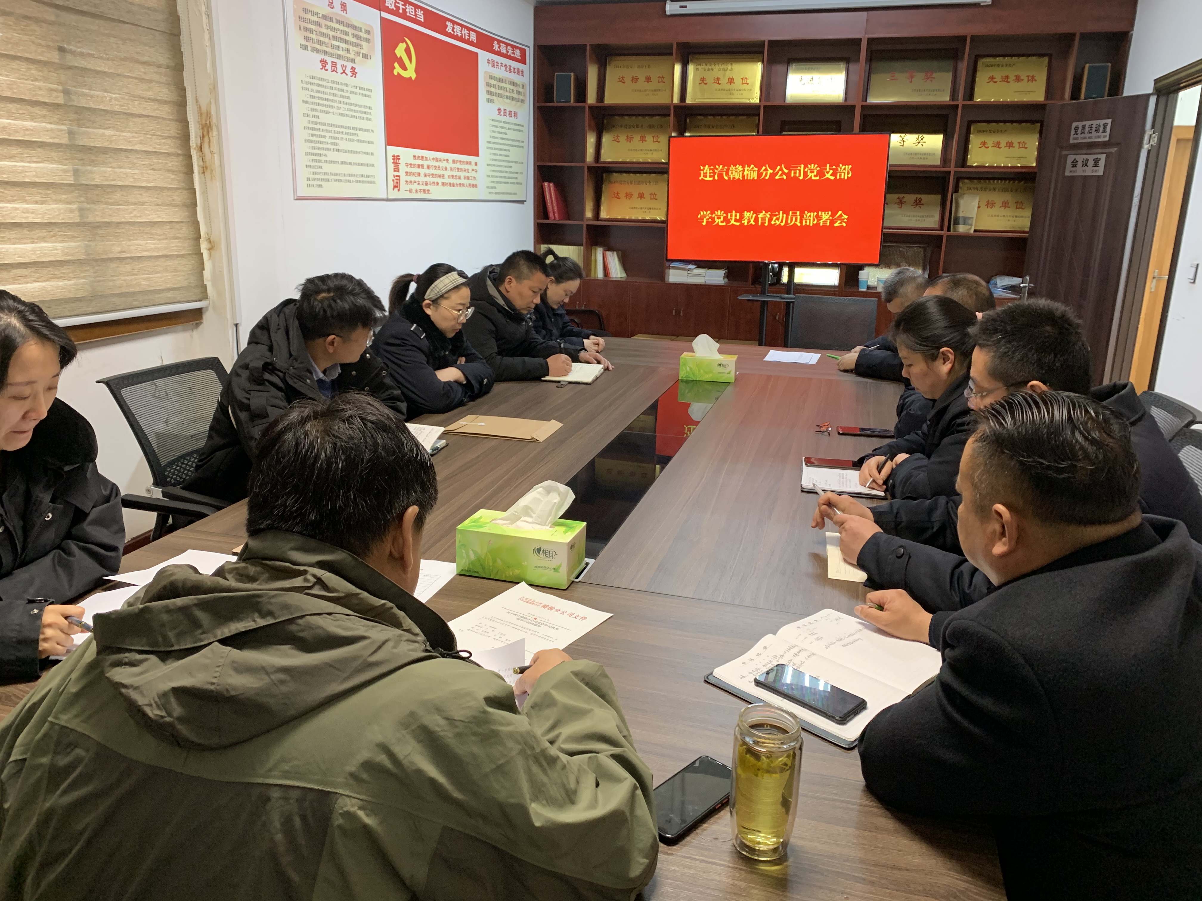 4月2日上午,连汽赣榆公司召开党史学习教育动员大会,深入学习贯彻习近平总书记在党史学习教育动员大会上的重要讲话精神,认真领会党中央和省委、市委决策部署要求。会议由支部书记、经理高维斌主持,全体党员和积极分子参加会议。