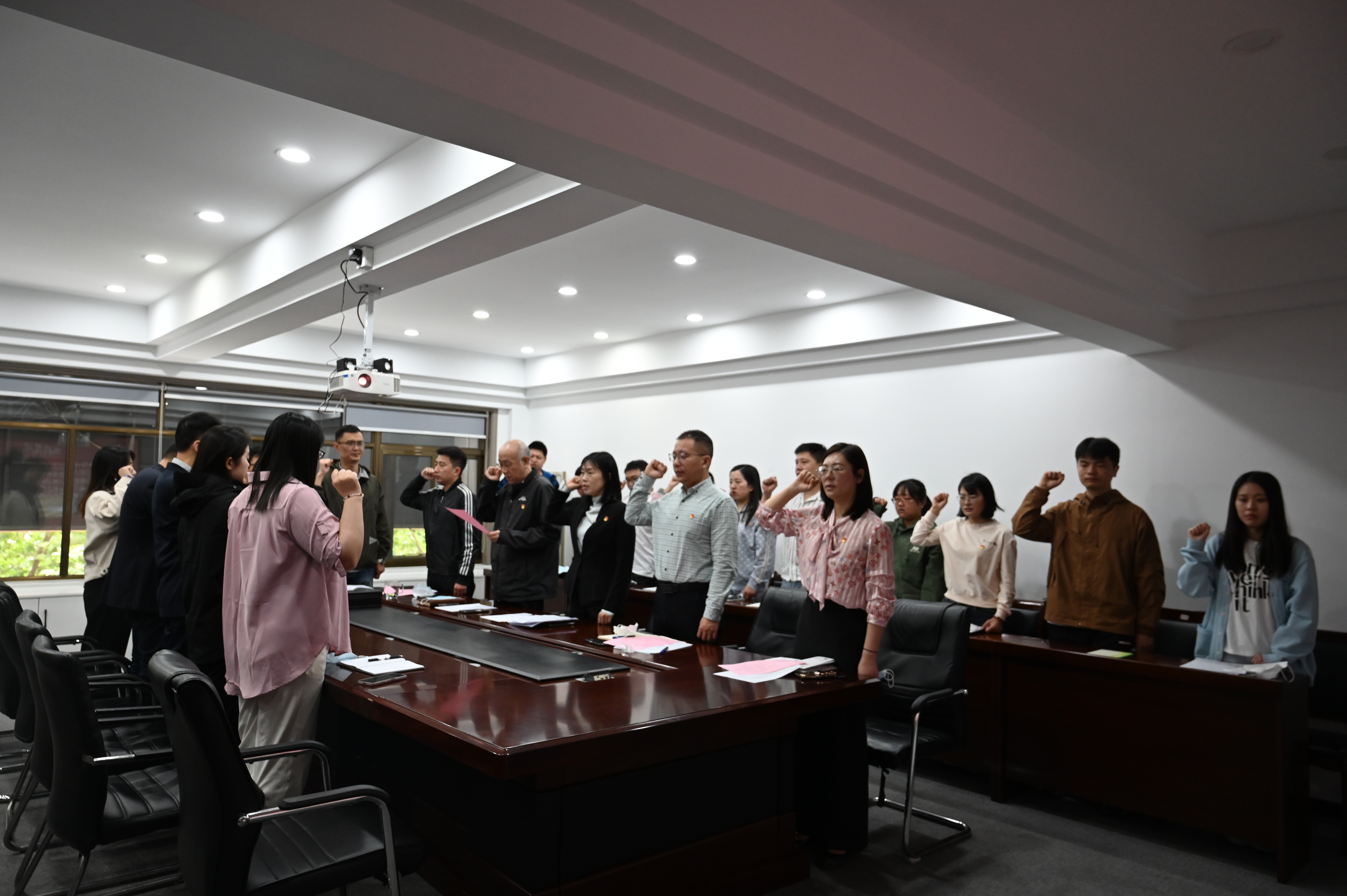 随后,与会人员共同观看了警示教育片《扣好廉洁从政第一粒扣子》。工会主席王冰带领大家进行廉洁从业宣誓,铮铮誓言在会场中回荡,现场的正式感、严肃感和参与感让与会人员深切感受到廉洁从政的重要性,进一步增强了纪律意识、规矩意识和廉洁意识。