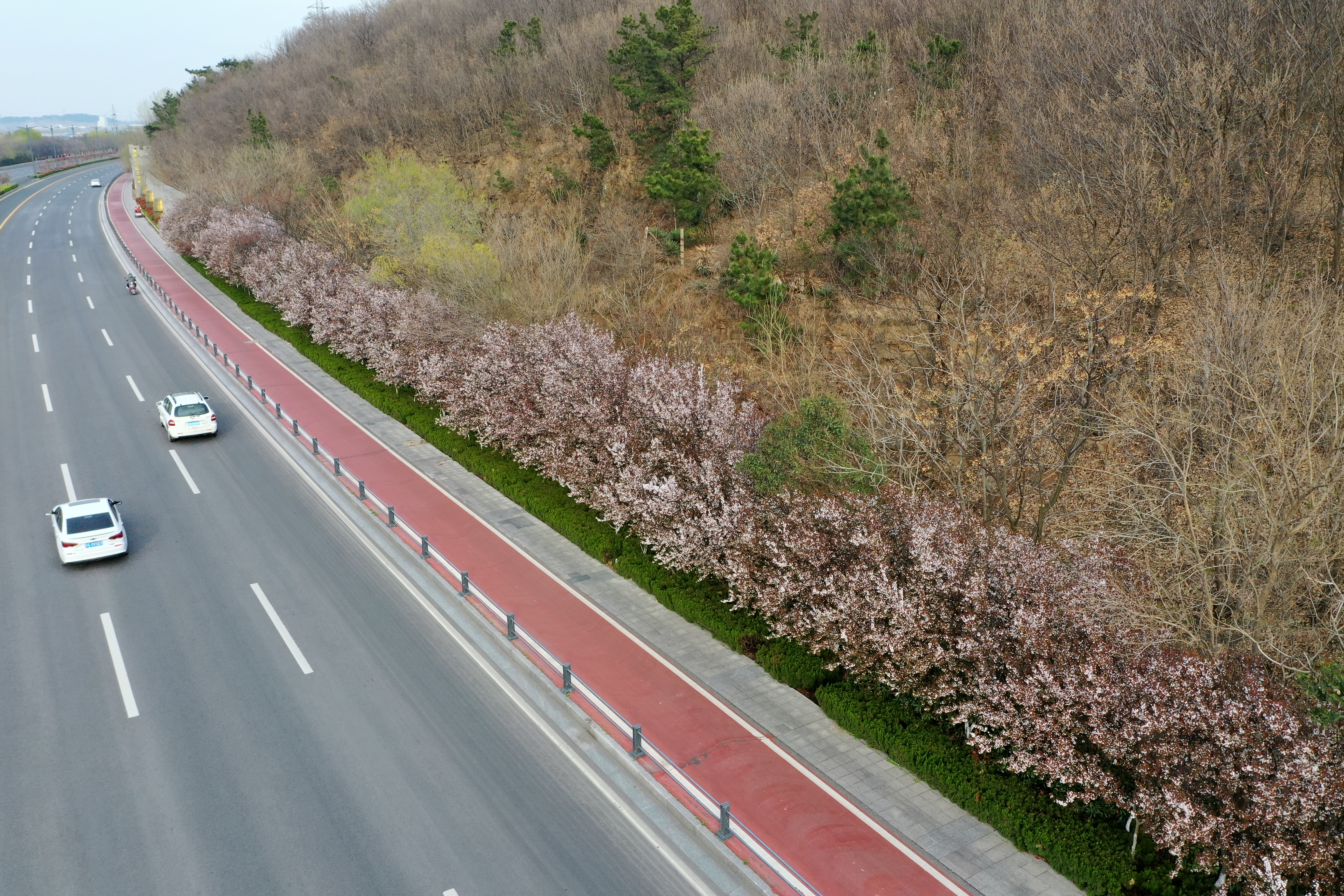 港城大道作为我市第一景观大道,每日车流量可超十万台次,其道路绿化已成为展示我市形象的重要景观。2021年以来,交通必威app最新版下载,必威(中国)对港城大道进行了整体绿化提升,在港城大道(凌州广场至佟圩立交段)全长13.2公里道路范围内补植了近10万株法桐、榉树、樱花、海棠、碧桃等苗木,达成四季错落绽放的绿化景观。