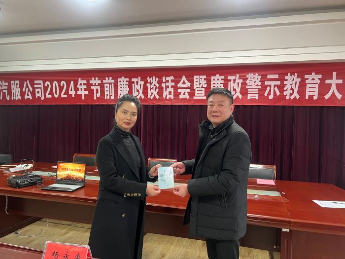 在2024年春节即将到来之际,为了加强廉政文化建设,营造风清气正的良好节日氛围,1月30日,汽服公司为领导干部送上了一份别样的新年礼物——廉洁贺卡。提醒大家时刻把好廉洁关,过一个欢乐祥和、清正廉洁的节日。