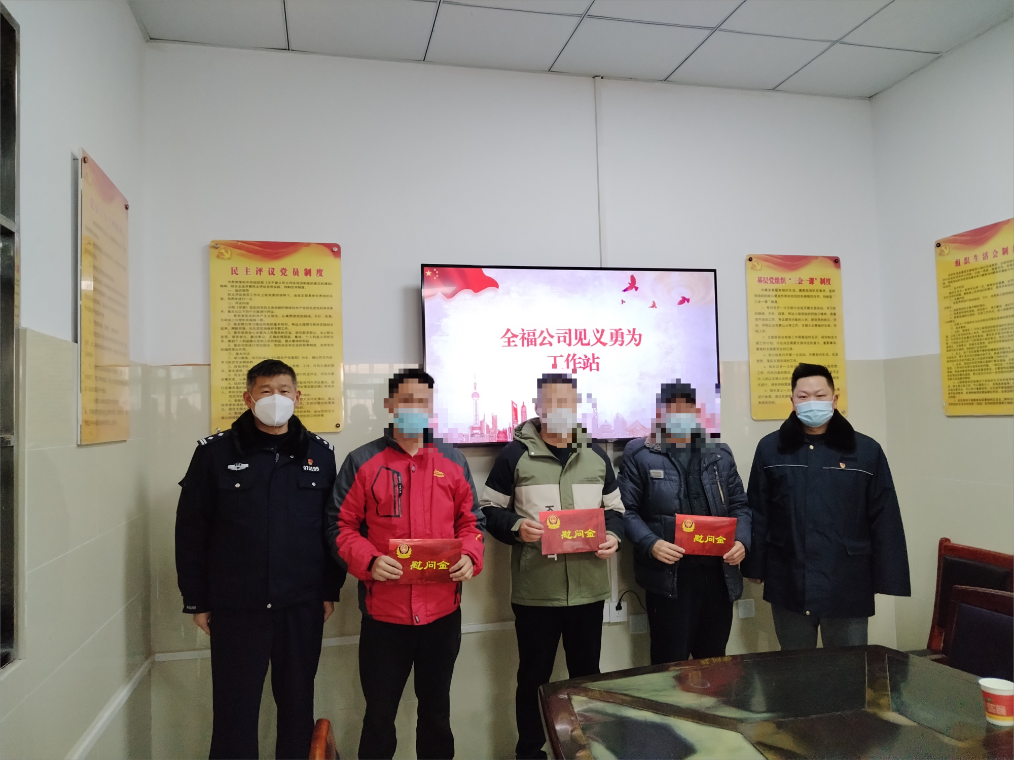 1月某天下午,出租汽车事业部连汽的哥朱文强因为这起见义勇为事迹,获得了市公交分局领导的表彰,并获得了见义勇为奖励金。出租汽车事业部还有全福公司的朱利、王召柏师傅也因见义勇为、热心助人先进事迹,同样受到市公交分局领导的表彰,并且给予每人奖励金。