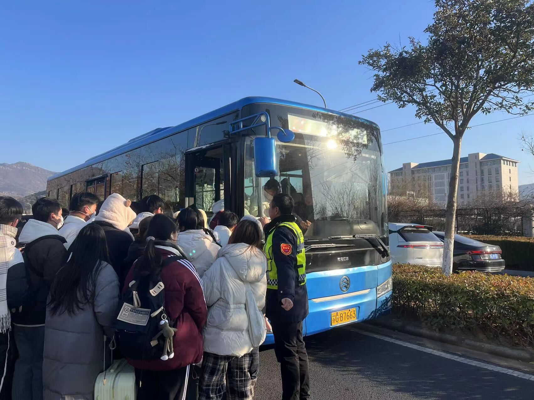 现场安排安管后服人员在各大院校公交站点现场管理车辆停靠,有序指挥引导公交车辆安全进出站点,以及对驾驶员进行安全行车和文明服务交代,并为学生提供相应的帮助,如搬运随身携带行李箱,下载支付软件,引导学生有序乘车等。不少学生对安管人员的帮助表示感谢,称每周公交必威app最新版下载,必威(中国)职工都会来大学城附近现场管理,为他们的出行提供便捷,真的很不容易,在寒冷的冬日里让他们让感到无比温暖。