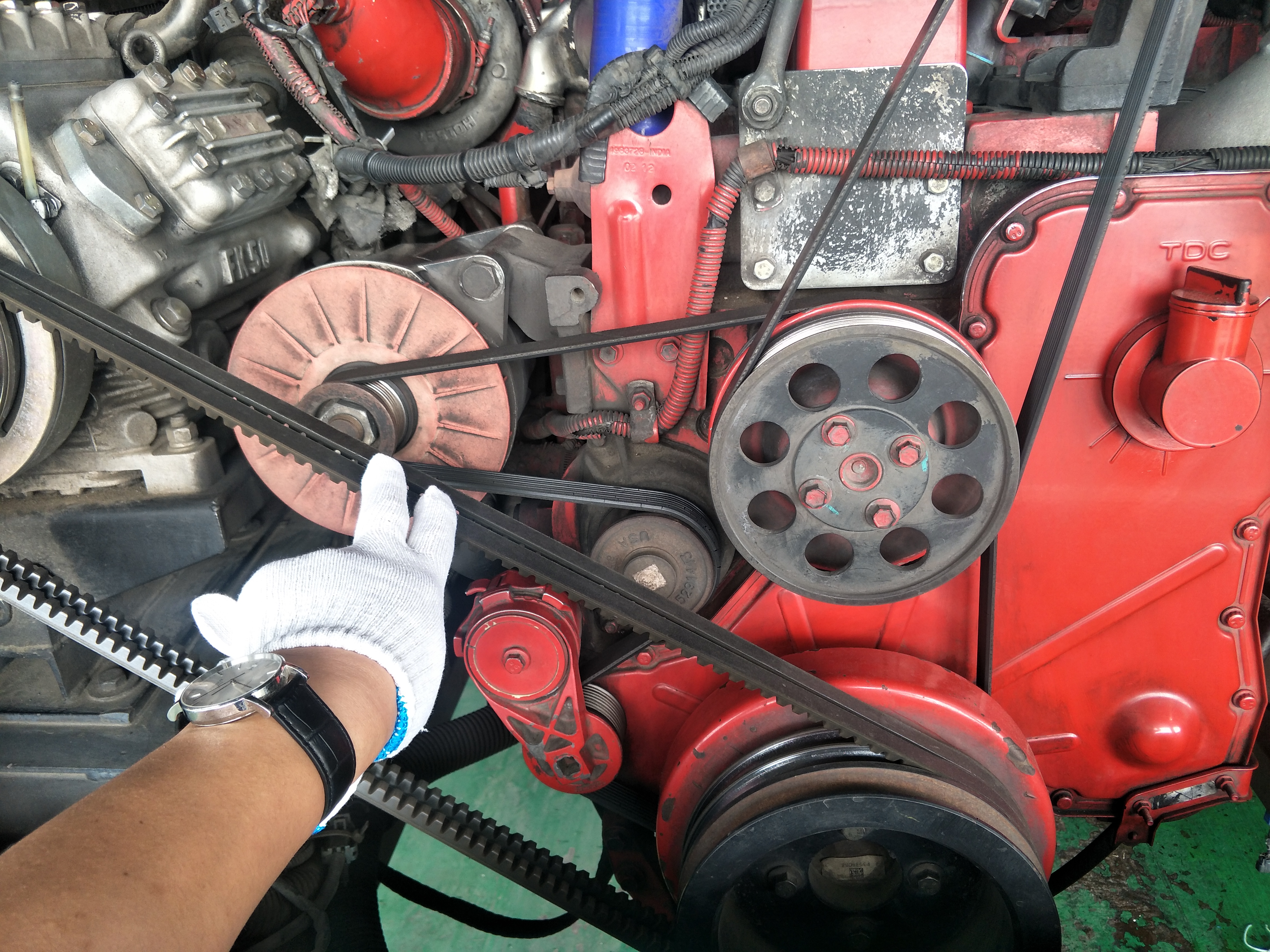 经常检查水泵工作情况和风扇皮带张紧力,风扇皮带不可沾油,防止风扇皮带打滑。要密切注意水泵漏水情况,注意将百叶窗开足。