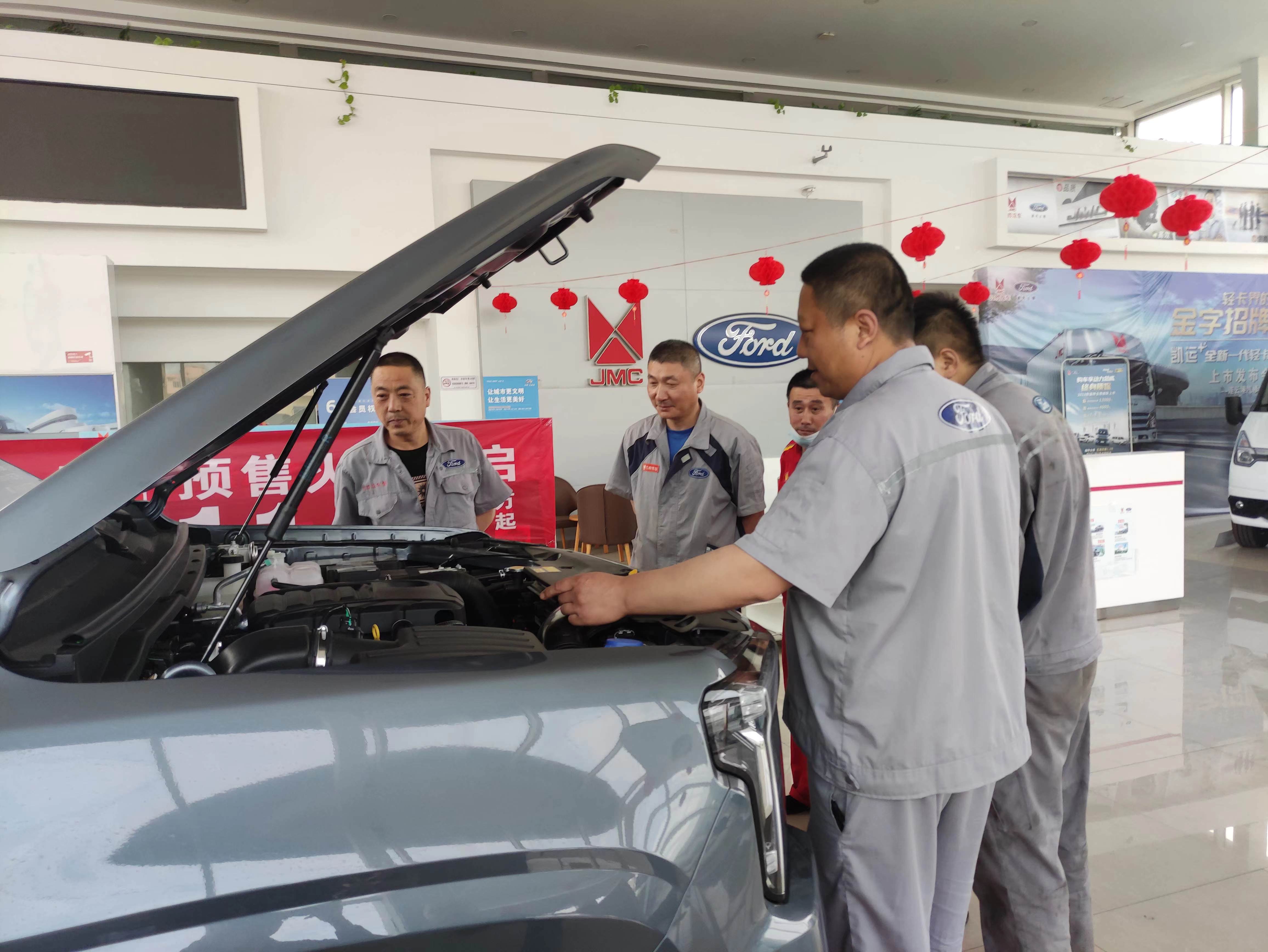 大道皮卡是江铃公司新推出的乘用皮卡车型,是今后的主推车型,自从四月上海车展亮相后,获得广大消费者的青睐。应市场要求,汽车修理公司抓住机遇,主动对接江铃公司,积极申报大道皮卡的售后服务,并且派出王军、严浩两位汽车维修人员赴江西学习新车型的维保要点。