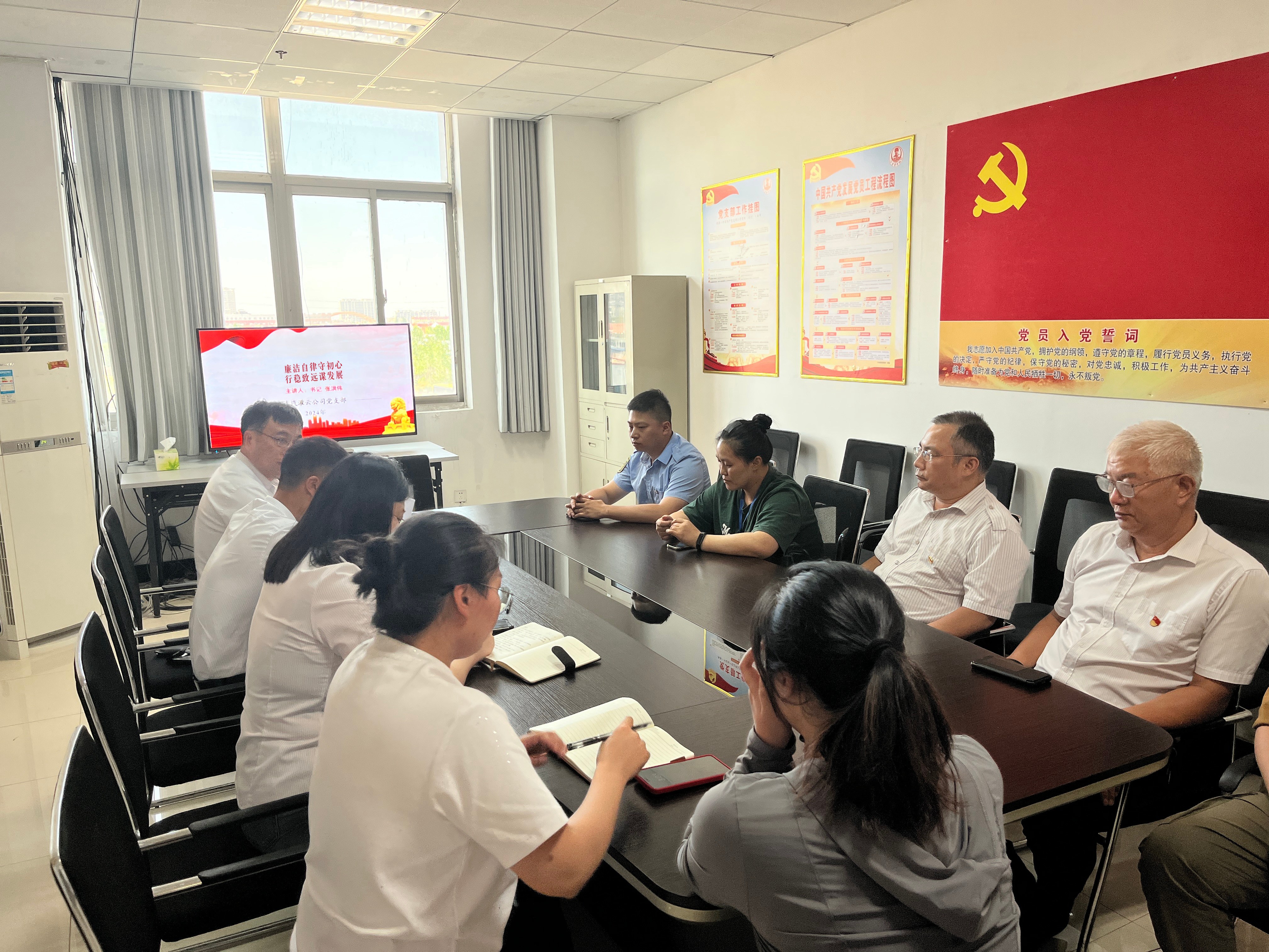 为进一步筑牢党员干部思想道德防线,提高拒腐防变能力,7月29日,在三楼党员活动室召开廉政党课,全体党员干部参加会议。