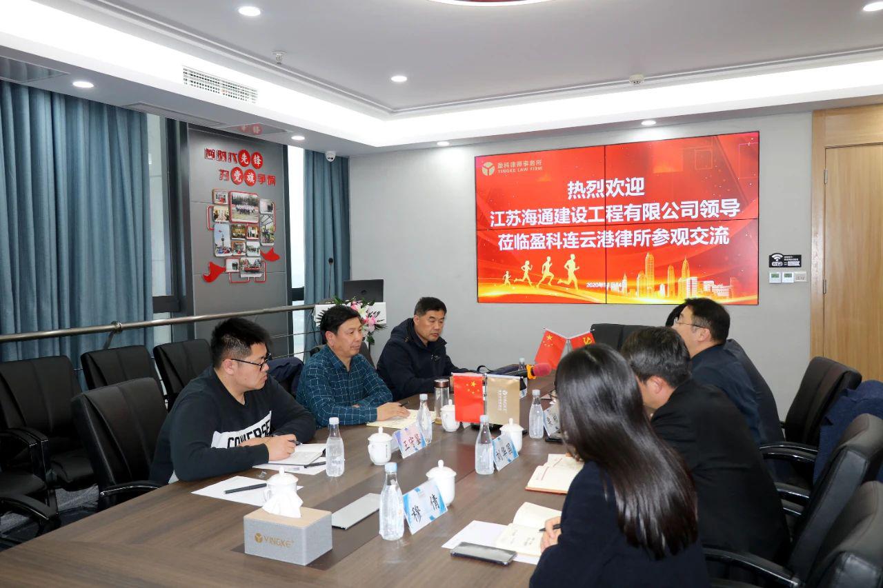 11月24日下午,海建公司党委书记、董事长仲济强,纪委书记曹新军带领公司相关人员应邀参加北京市盈科连云港律师事务所调研活动。盈科连云港律所执行主任栗彬,刑事法律事务部主任刘华国、副主任穆倩、秘书长付凯等接待了海建公司一行并带领大家参观了律所办公场所,双方就律所组织管理模式、法律业务领域等进行了友好交流。