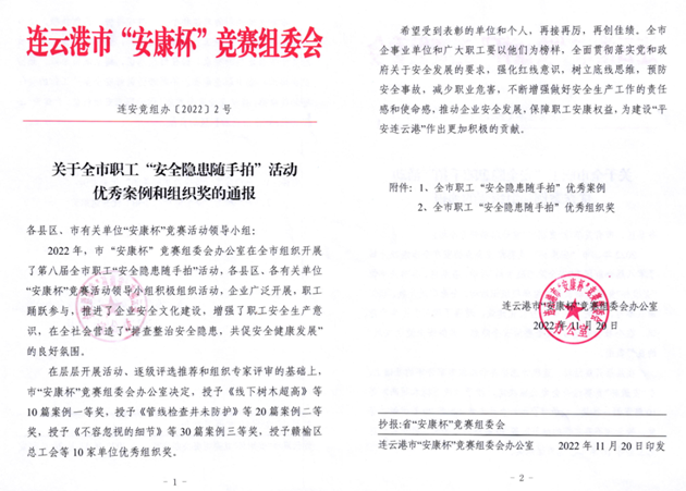 近日,从市“安康杯”竞赛组委会传来喜讯,交通控股必威app最新版下载,必威(中国)荣获第八届全市职工“安全隐患随手拍”活动优秀组织奖,必威app最新版下载,必威(中国)1名职工荣获一等奖、4名职工荣获二等奖、3名职工荣获三等奖。