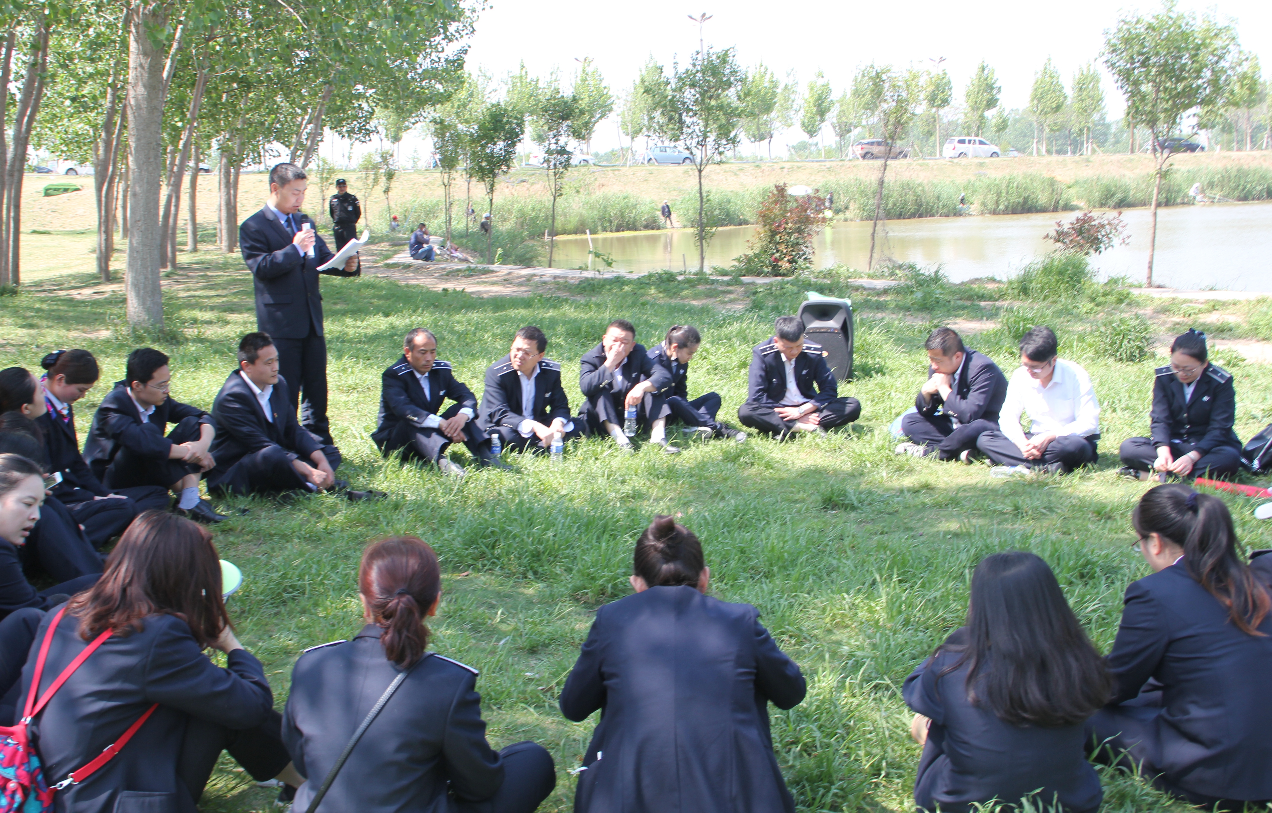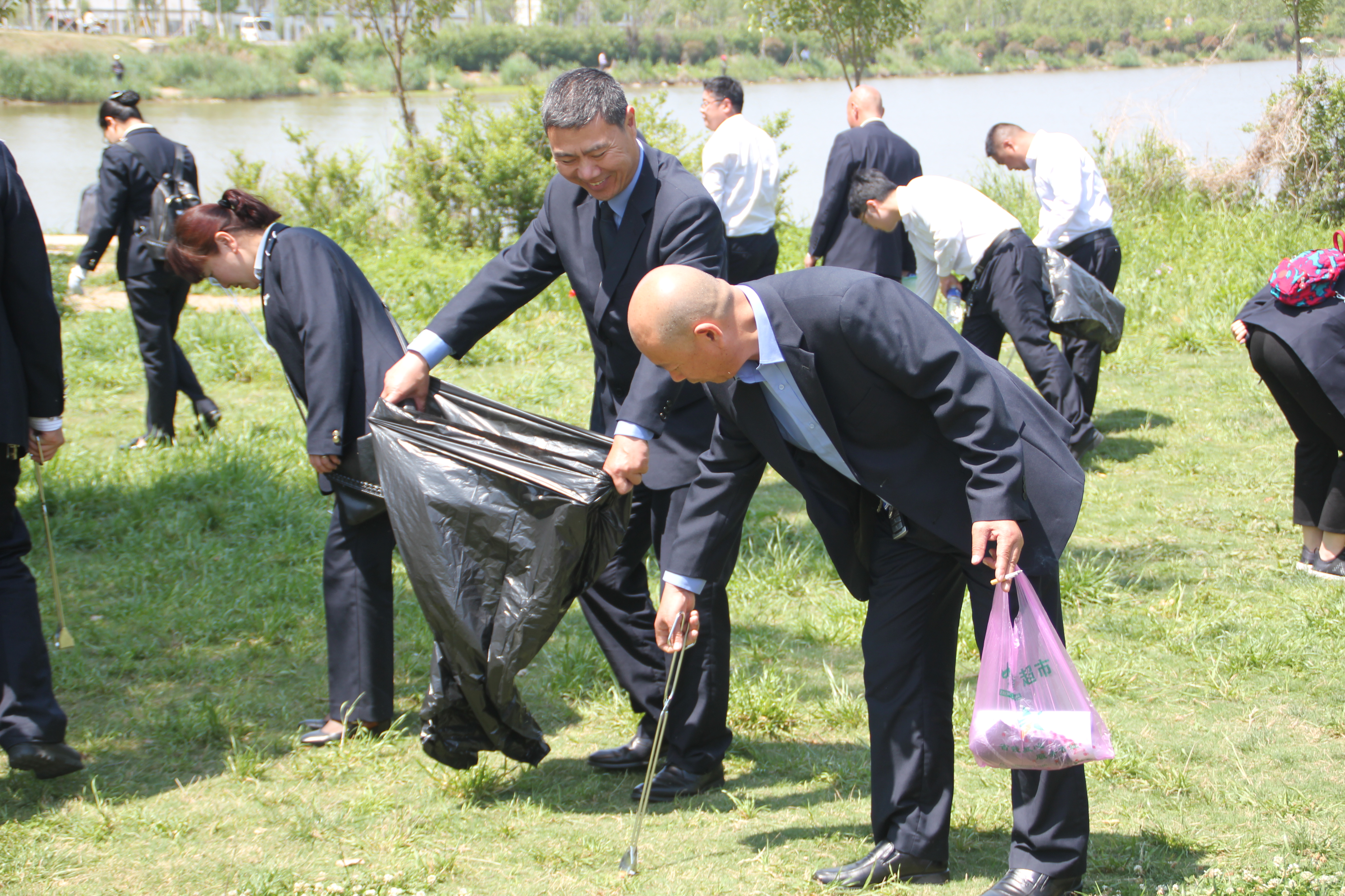 会后,青年职工和劳模们开展志愿活动,主动捡拾月牙岛周围垃圾,为绿化再点缀一片清净。