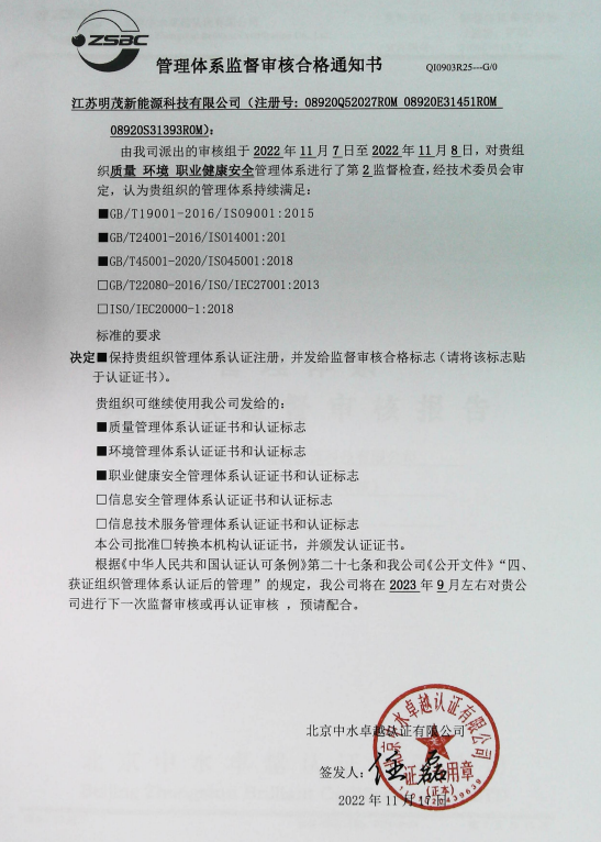 此次审核的顺利通过,是对明茂公司质量体系规范管理的充分肯定,也反映出公司正在以高标准、严要求强化质量体系建设,为公司更好、更快发展奠定良好的基础。