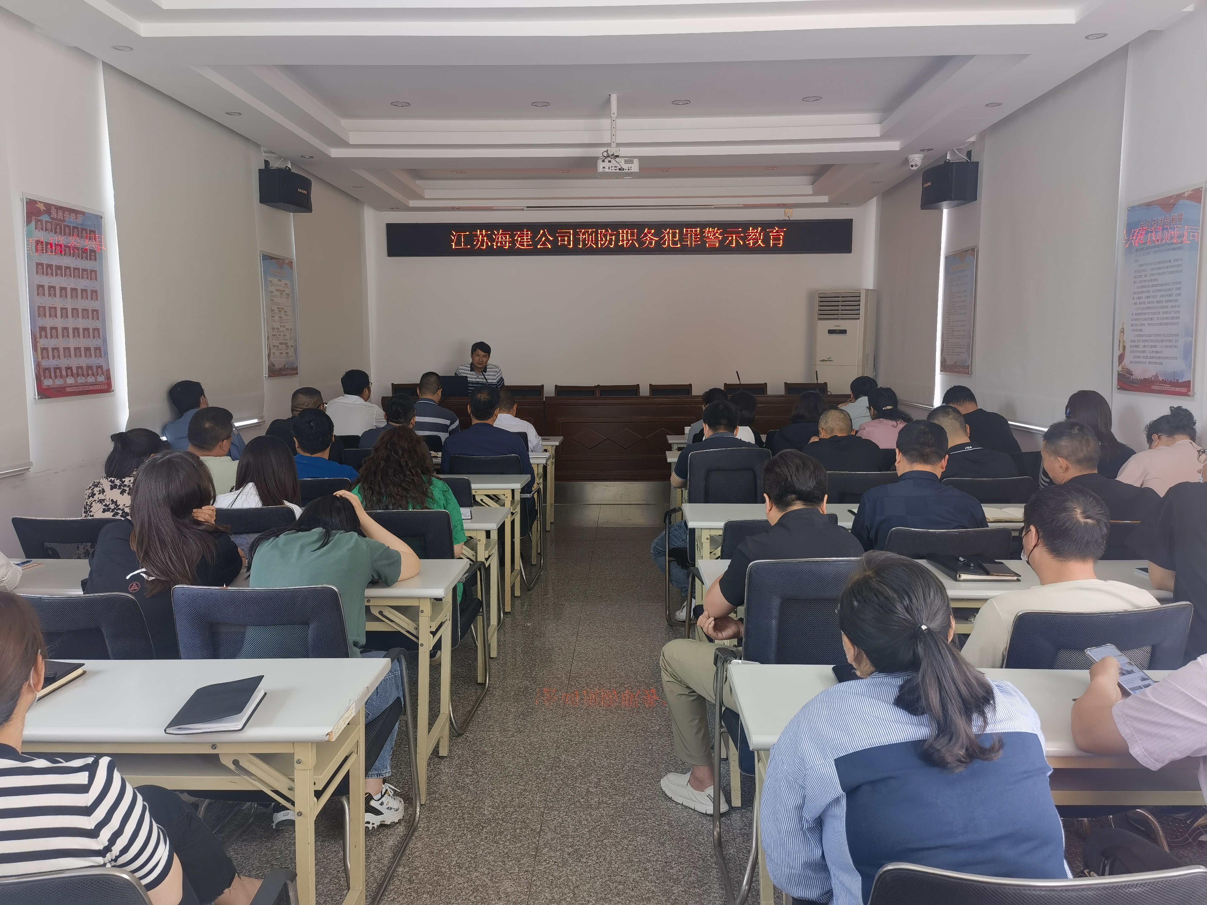 为深入推进公司全面从严治党,积极发挥廉政教育“引路”作用,增强党员干部规矩意识、纪律意识和廉洁意识,筑牢预防职务犯罪防线。5月26日,江苏海建公司纪委举办预防职务犯罪专题培训,邀请北京市盈科(连云港)律师事务所刑事法律事务部主任刘华国作专题讲座,公司领导班子成员、各分子公司领导班子,机关全体党员及“85后”“90后”职工近60人参加培训。