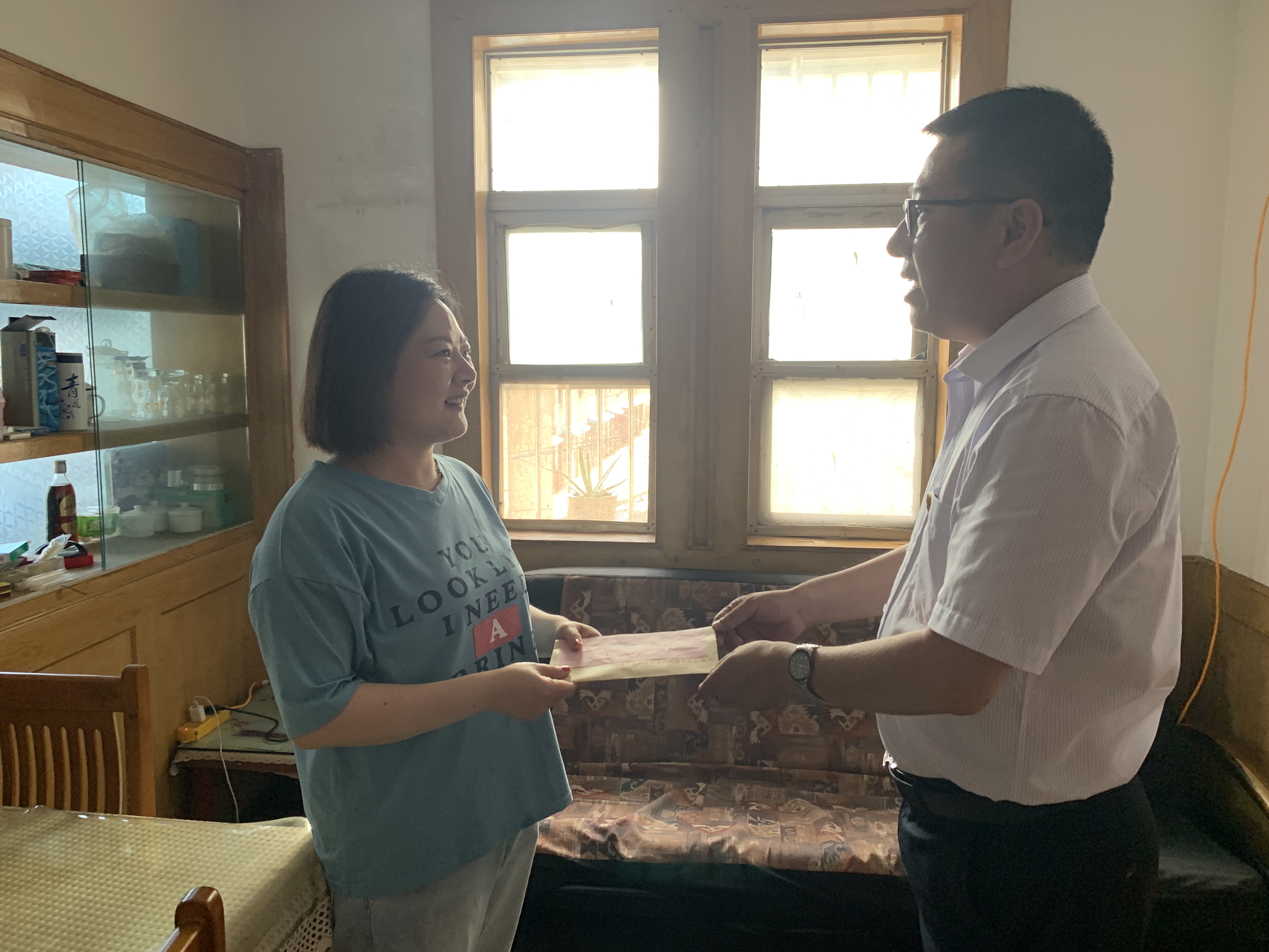 7月1日上午,快客公司领导班子一行四人来到困难党员沈益健的家里,探望慰问了沈益健的妻子,给他们送去了组织的关怀和温暖。
