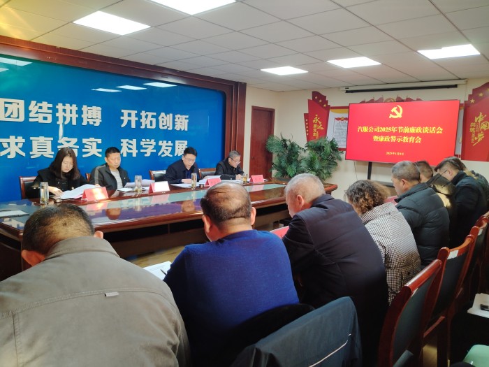 1月9日下午,汽服公司召开节前廉政谈话会暨廉政警示教育会,公司党委书记、总经理鞠仕亮等党委班子成员、各部门主要负责人、各党支部书记及党员代表共30余人参加会议。会议由公司党委副书记、常务副总经理蒋健主持。