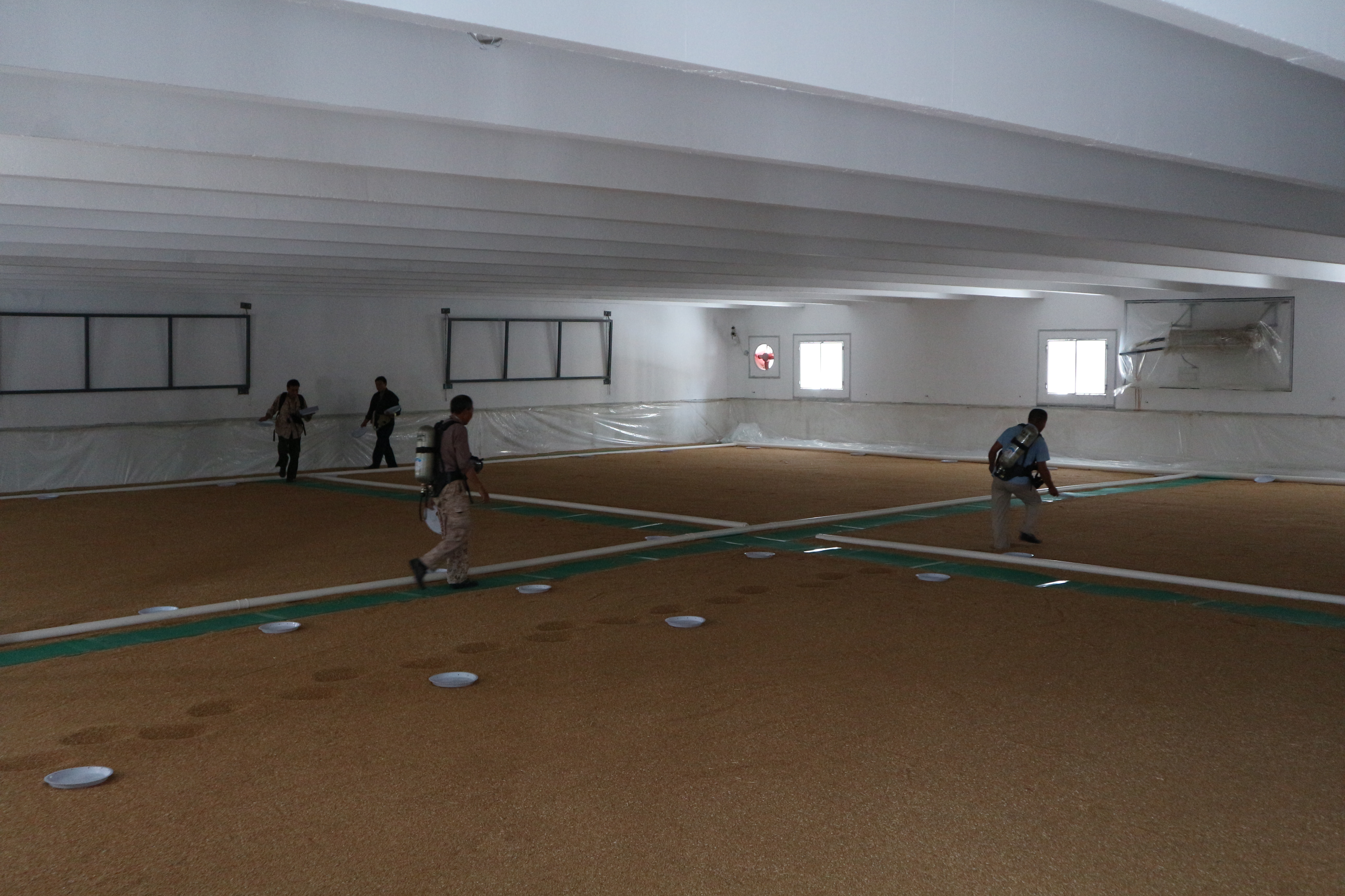 8月16日下午,熏蒸人员在和茂公司有关负责人的统一安排下,按照国家粮食局发布的相关标准和规范进行磷化铝规范化熏蒸作业。此次熏蒸总面积达到17181平方,共9个仓房。